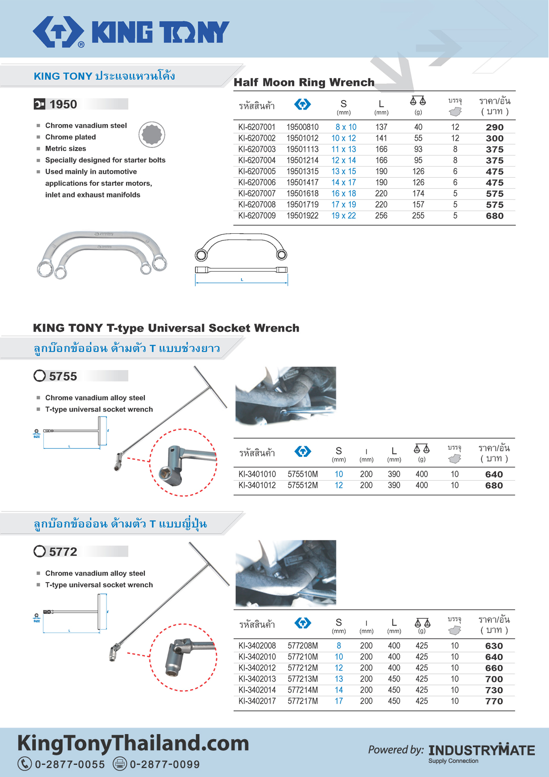 ลูกบ๊อกข้ออ่อน ด้ามตัว T แบบช่วงยาว (T type Universal Socket Wrench)
